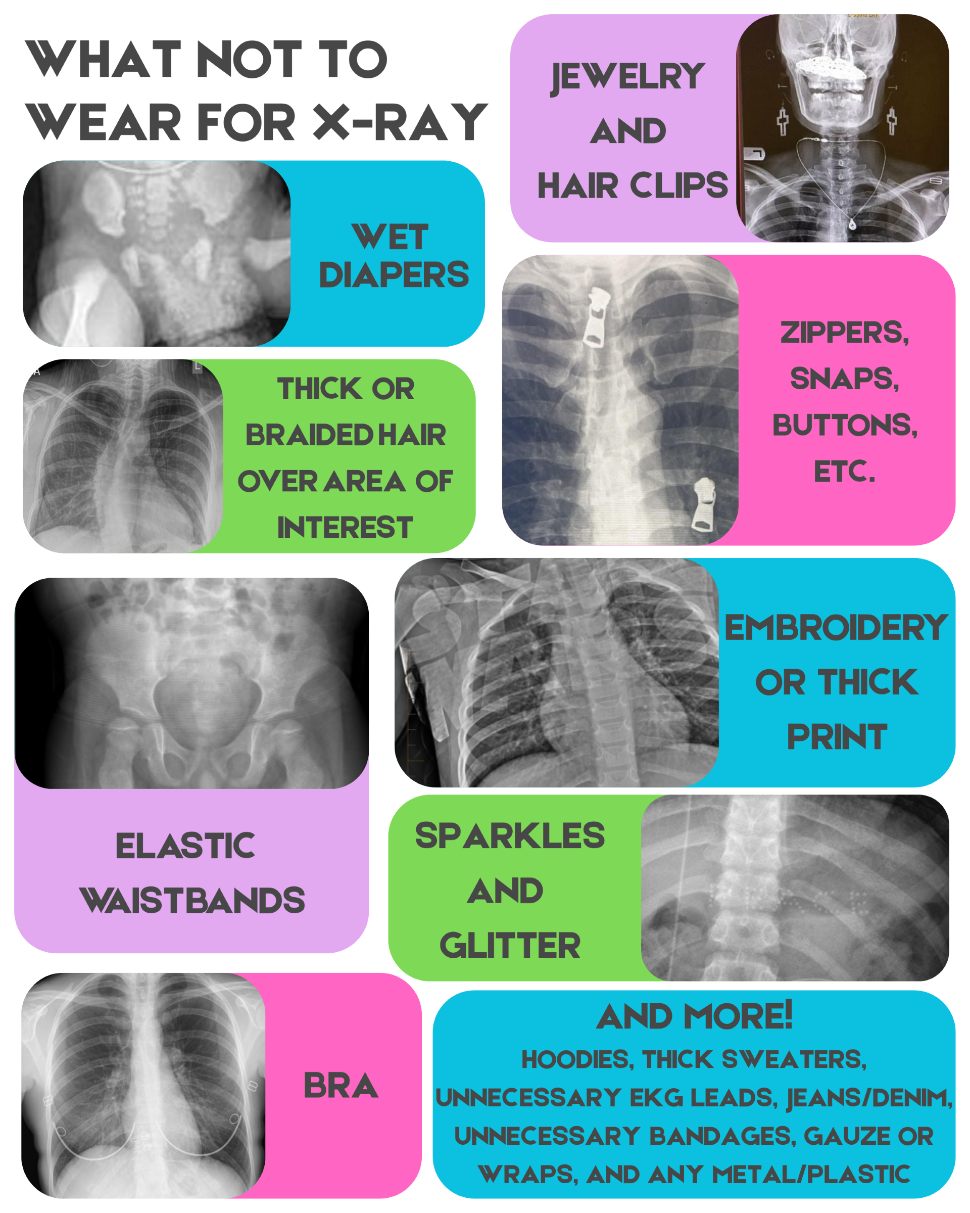 Below is a friendly guide explaining why these items should not be worn during an X-ray examination.